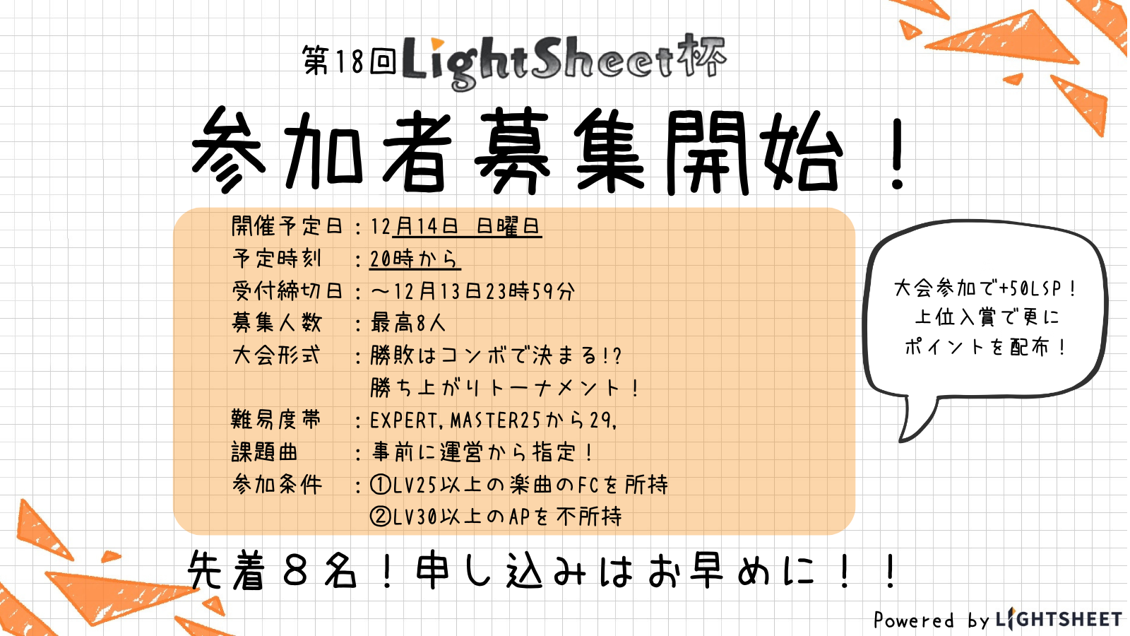 ブログをご覧の皆様、こんにちは。LightSheetブログ(以下:LSブログ):LightSheet杯(以下:LS杯)関連記事担当のオリエンティです。